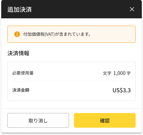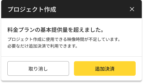 プロジェクト作成時、残りの使用量が足りない場合、次の基準に応じた追加費用を算定してお知らせします。追加費用を決済すると、すぐに利用できます。